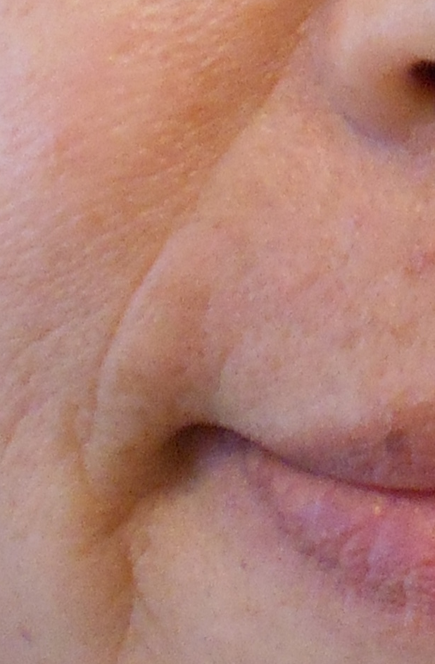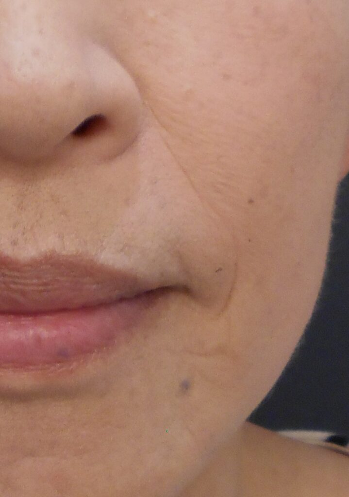 ほうれい線はよく動く部分なので、動きに合わせてファンデーションがヨレてしまっている状態です